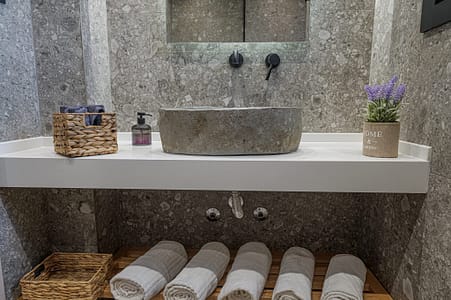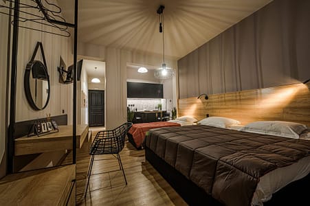 Our premium guest houses-studios feature modern design and amenities. Through the room’s window you can enjoy the view of the picturesque village of Milina. It has a fully equipped kitchen, free WiFi, large TV, air conditioning and all the toiletries you will need.